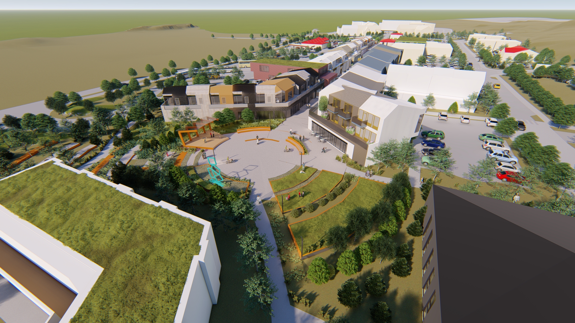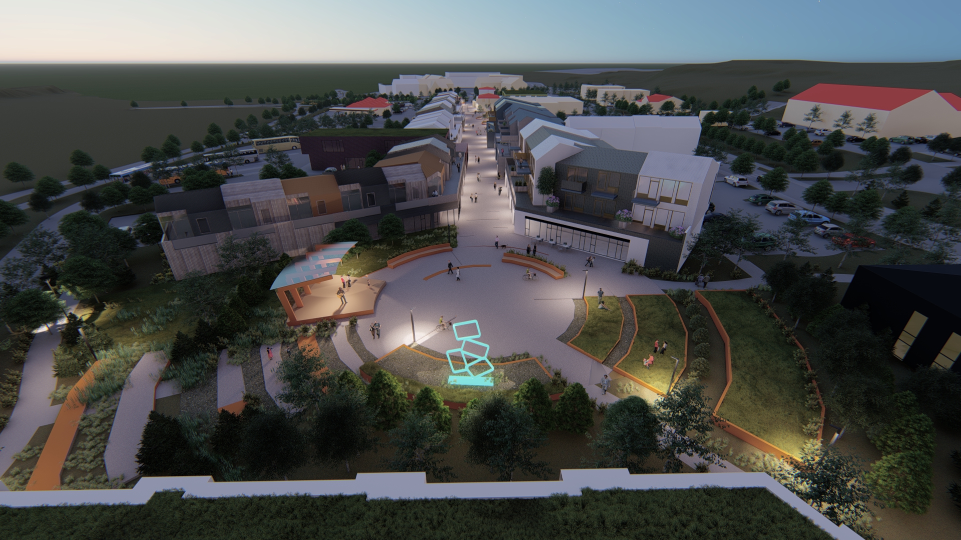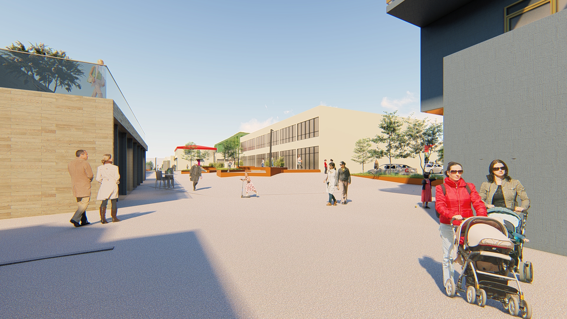 Fyrir miðju verður torg sem gert verður að aðlaðandi bæjartorgi með bekkjum og götugögnum sem styður blómlega verslun og þjónustu. Torgið nýtist fyrir mismunandi viðburði eins og ýmis hátíðarhöld, götu- og jólamarkað.