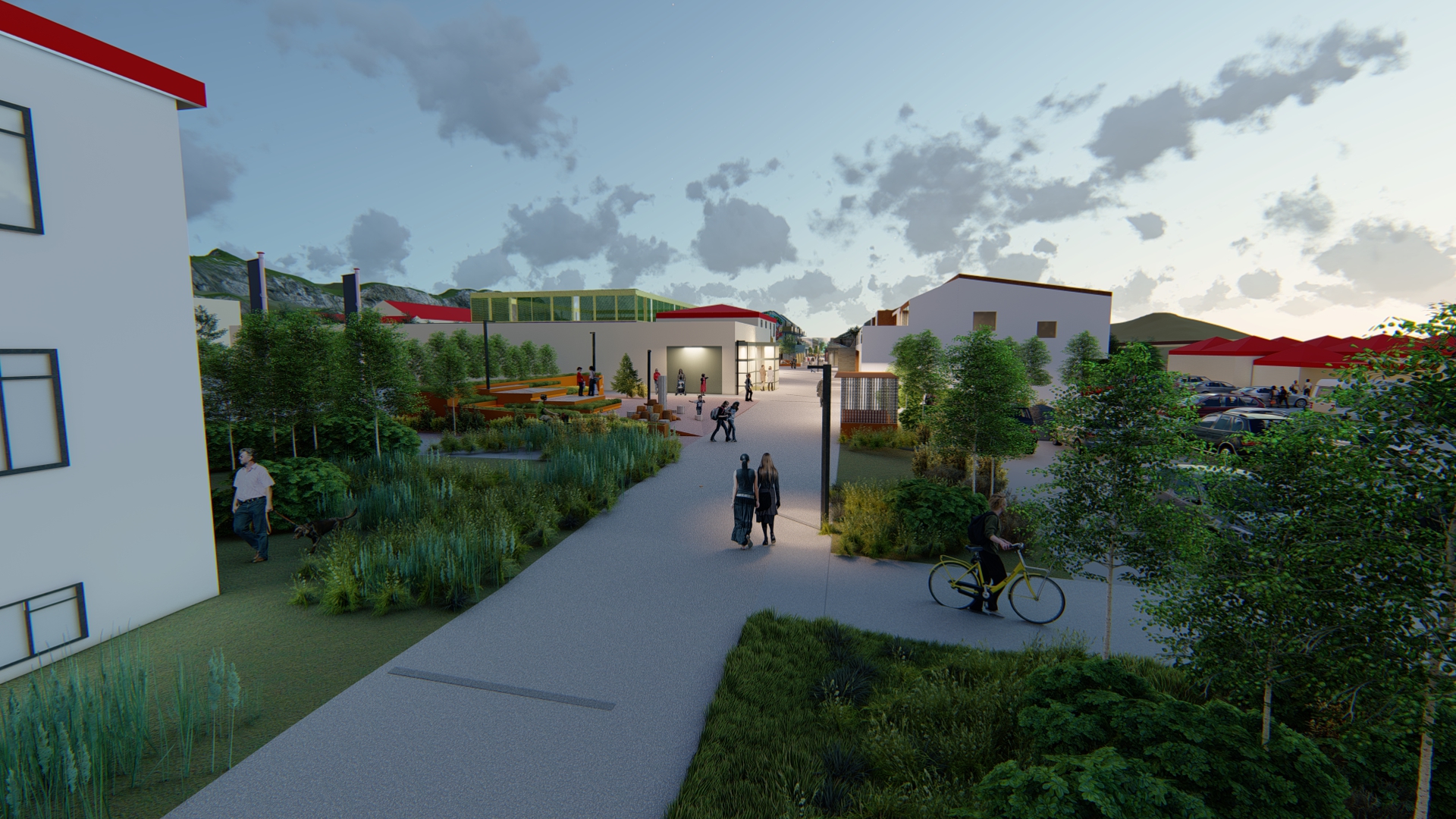 Samkomusvæðið verður mótað í hring þar sem bekkir, gróður og útisvið verða til staðar til að halda fjölbreyttar samkomur. Almenningsgarðurinn nýtist bæði fyrir leik og útivist